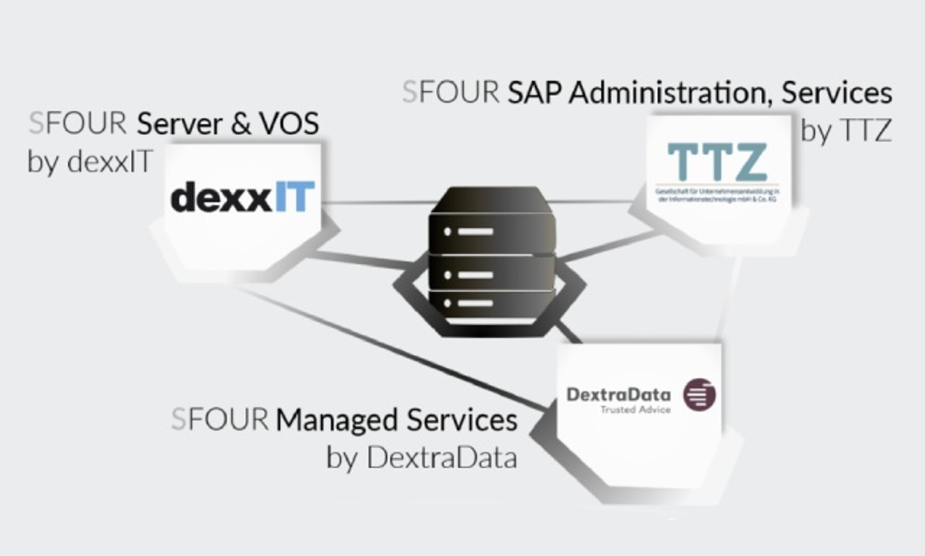 Unter der Dachmarke SFOUR COMPLETE SOLUTION™ präsentieren dexxIT, DextraData und TTZ eine auf SAP S/4HANA™ basierende »All in « On-Premise Komplettlösung, bei der Hardware, Software und das dazu notwendige SAP™ Know-how aus einer Hand angeboten wird. Die 360-Grad-Lösung SFOUR™ beinhaltet neben SAP™-zertifizierter Hardware auch das Sizing von SAP™-Systemen, Migration nach SAP S/4HANA™, Administration, Data Quality Management und SAP™-Training sowie die notwendige Analyse und Kontrolle für die Migration. Gerade die SAP S/4HANA™ Migration/Implementierung ist mit einem komplexen Ressourceneinsatz verbunden. SFOUR™ schafft Transparenz über die notwendigen Investitionen und liefert die Basis für eine verlässliche Kostenkalkulation.